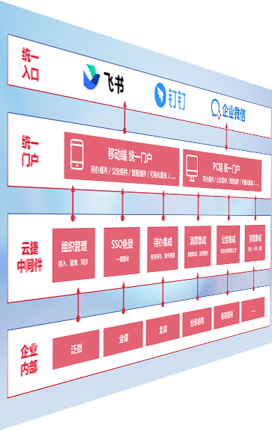 对协作平台提供支持服务,,支持企业应用与协作平台对接,,包含组织同步、、消息集成、、待办集成等。。。。支持目前主流的协作平台:钉钉、、、企微和飞书。。。。