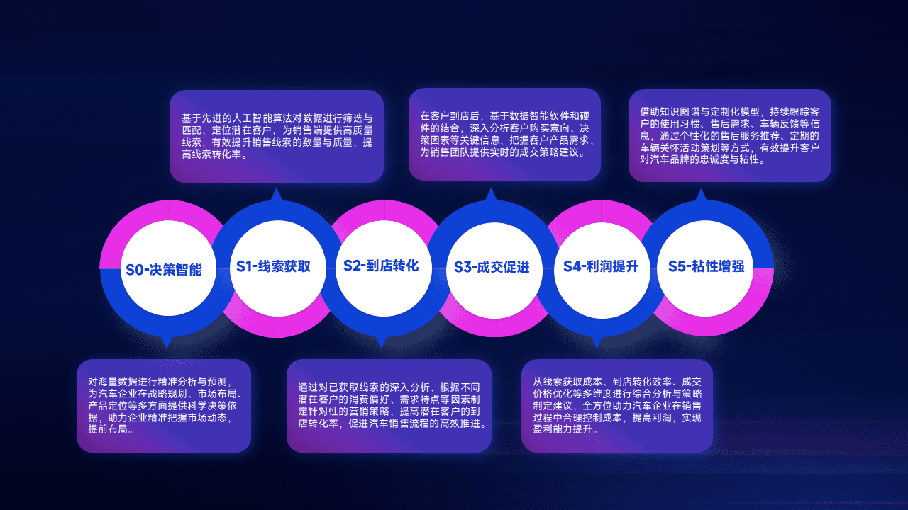 通过拓宽潜在客户来源、、优化线索分配并提高到店转化率,,,,以增强销售效率。。同时,,,利用线索数据不断优化分析模型,,,,有效提升转化率,,扩大营销影响力。。